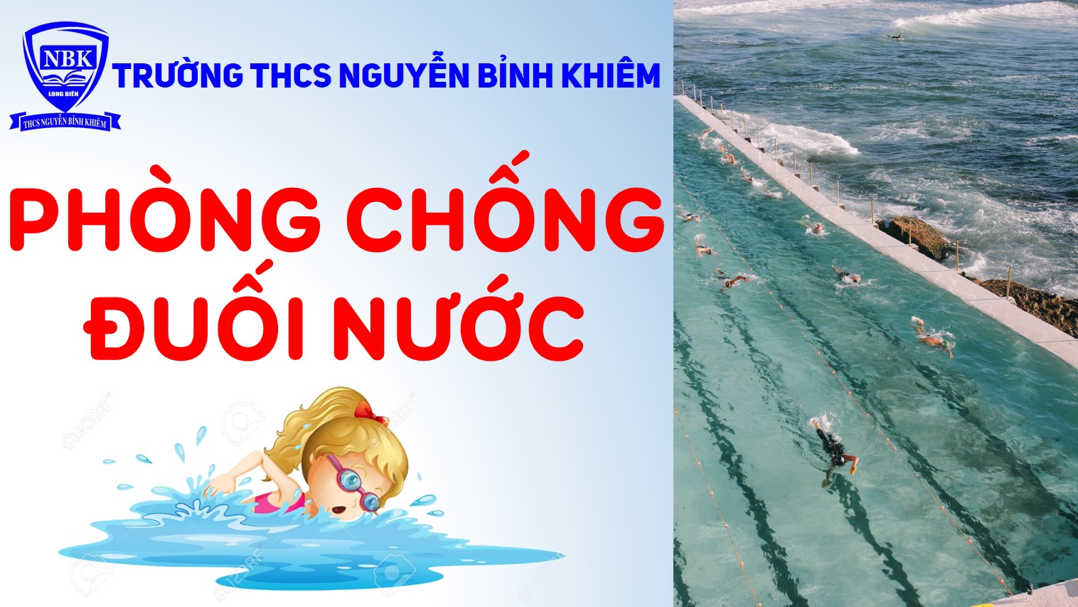 - Chỉ đi bơi ở các hồ bơi bảo đảm an toàn và có nhân viên cứu hộ giám sát.