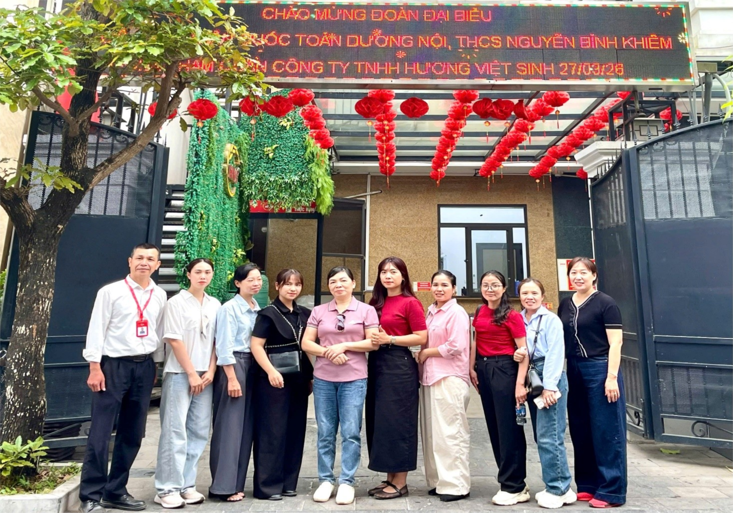 Thực hiện theo kế hoạch năm học 2025 – 2026, sáng ngày 27/03/2026, ban giám hiệu và đại diện phụ huynh học sinh của nhà trường tham gia chuyến khảo sát thực tế, truy xuất nguồn gốc thực phẩm qua từng công đoạn của quá trình sản xuất, chế biến và phân phối của công ty hương việt sinh – đơn vị cung cấp thực phẩm và chế biến suất ăn bán trú cho học sinh của nhà trường. công ty hương việt sinh là công ty hoạt động lâu năm trong lĩnh vực cung cấp suất ăn bán trú cho các em học sinh. để kiểm soát tốt các nguồn thực phẩm, công ty đã đầu tư hệ thống trang trại trồng trọt và liên kết sản xuất chăn nuôi theo chuỗi để cung cấp nguồn thực phẩm sạch, an toàn cho bếp ăn các trường học trên địa bàn thành phố hà nội trong đó có trường THCS Nguyễn Bỉnh Khiêm – phường Phúc Lợi.