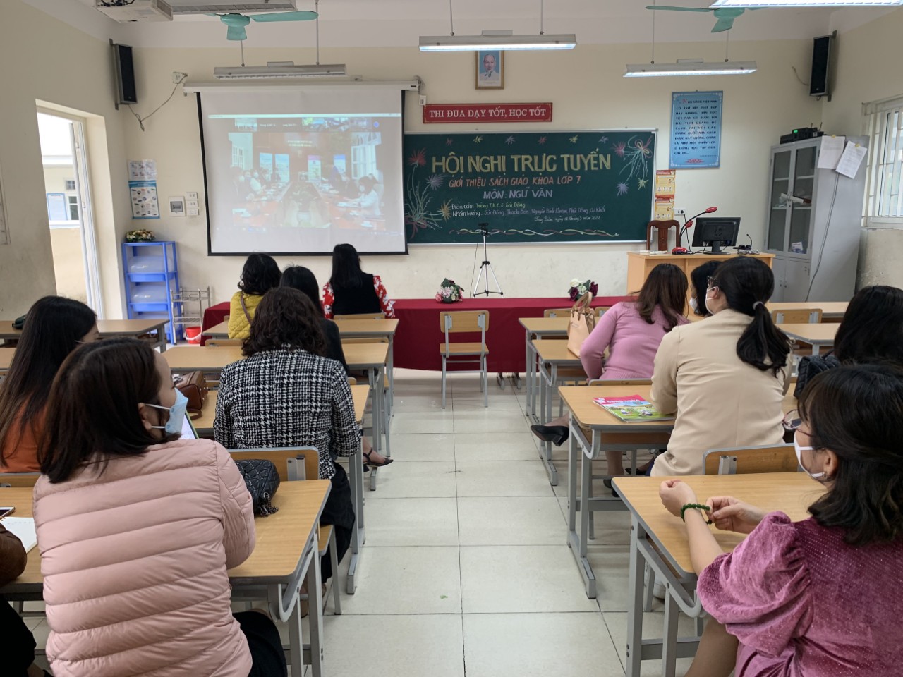 Theo kế hoạch của Bộ Giáo dục và đào tạo, năm học 2022-2023 tới đây, các trường THCS sẽ bắt đầu triển khai giảng dạy Sách giáo khoa mới với các bộ sách: Kết nối tri thức với cuộc sống, Chân trời sáng tạo và Cánh diều chương trình lớp 7. Để công tác giảng dạy diễn ra hiệu quả, các cán bộ, giáo viên đã tham gia nhiều khóa tập huấn. Ngày 12/3/2022, trường THCS Nguyễn Bỉnh Khiêm cùng các trường THCS trên địa bàn quận Long Biên đã tham gia tập huấn trực tuyến Bồi dưỡng giáo viên giảng dạy SGK lớp 7. Để các buổi tập huấn diễn ra hiệu quả và an toàn trong bối cảnh dịch bệnh, cơ sở vật chất, đường truyền internet, các phòng học và chỗ ngồi phân nhóm giãn cách theo quy định đã được chuẩn bị đầy đủ, hợp lý. Trong ngày tập huấn, cán bộ và giáo viên của trường cùng với giáo viên các trường THCS trong cụm đã được lắng nghe; trao đổi cũng như được hướng dẫn chi tiết cách thức triển khai giờ học theo quan điểm đổi mới ở các bộ môn: Ngữ văn; Toán; Tiếng Anh; Giáo dục công dân; Khoa học tự nhiên; Lịch sử và Địa lý; Hoạt động trải nghiệm, hướng nghiệp; Tin học; Âm nhạc; Mỹ thuật; Thể dục và Công nghệ.