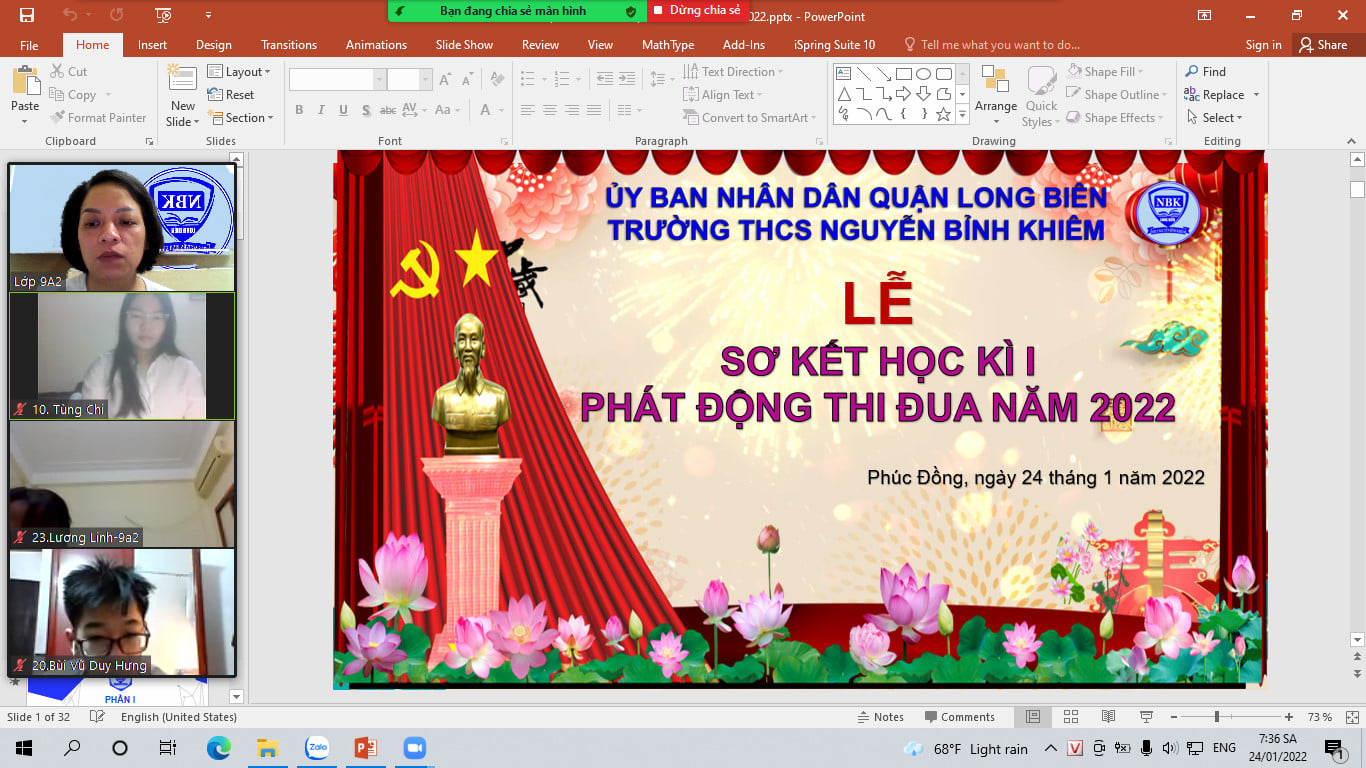 Trang nghiêm nhưng cũng vô cùng ấm áp là không khí chung của buổi lễ sơ kết học kì I và phát động thi đua năm 2022 (năm học 2021 – 2022) của trường THCS Nguyễn Bỉnh Khiêm.