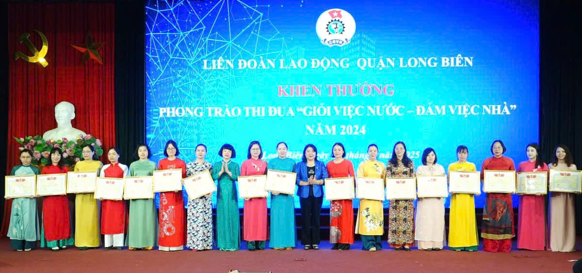 Ngày 24/4, Liên đoàn Lao động (LĐLĐ) quận Long Biên tổ chức Lễ phát động Tháng Công nhân, Tháng hành động về An toàn, vệ sinh lao động (ATVSLĐ) năm 2025; tuyên dương Công nhân giỏi năm 2025; khen thưởng phong trào thi đua “Giỏi việc nước - đảm việc nhà” năm 2024.