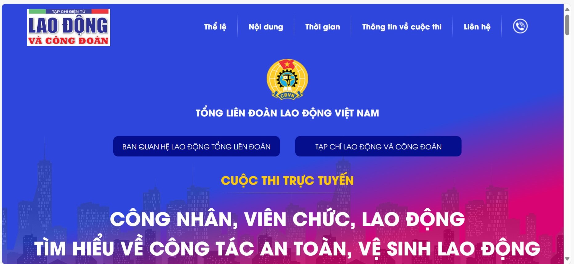 Nội dung của Cuộc thi tập trung vào tìm hiểu các kiến thức về an toàn, vệ sinh lao động, gồm: các văn bản quy phạm pháp luật liên quan về công tác An toàn, vệ sinh lao động được quy định tại Bộ luật Lao động, Luật An toàn, vệ sinh lao động, các văn bản, tài liệu đã được ban hành của Chính phủ, Thủ tướng Chính phủ, các Bộ, ngành và Tổng Liên đoàn Lao động Việt Nam. Cuộc thi được tổ chức theo hình thức thi trực tuyến (online) trên Tạp chí điện tử Lao động và Công đoàn tại địa chỉ link Cuộc thi: laodongcongdoan.vn.