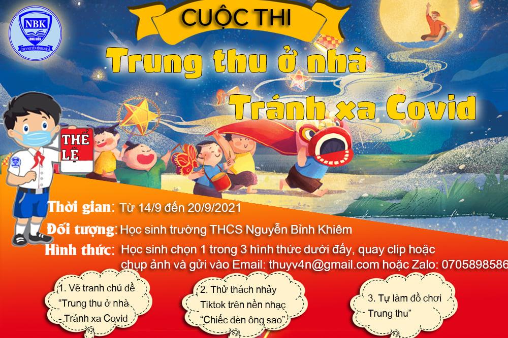 Tranh vẽ trên khổ A3 , chủ đề: “Trung thu ở nhà – tránh xa Covid”