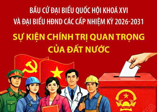 Hà Nội (TTXVN 2/3) Cuộc bầu cử đại biểu Quốc hội khóa XVI và đại biểu HĐND các cấp nhiệm kỳ 2026-2031 được tổ chức ngày 15/3/2026 trên phạm vi cả nước. Đây là sự kiện chính trị quan trọng của đất nước, diễn ra ngay sau Đại hội đại biểu toàn quốc lần thứ XIV của Đảng; là bước cụ thể hóa nghị quyết gắn liền với công tác cán bộ của Đảng, liên quan đến trách nhiệm của các cấp, các ngành; là nơi để cử tri phát huy quyền làm chủ của công dân, lựa chọn bầu ra những người tiêu biểu, xứng đáng đại diện cho ý chí, nguyện vọng và quyền làm chủ của mình trong Quốc hội và HĐND các cấp nhiệm kỳ mới. Cuộc bầu cử góp phần tích cực vào việc xây dựng, củng cố và hoàn thiện Nhà nước pháp quyền XHCN của Nhân dân, do Nhân dân, vì Nhân dân, dưới sự lãnh đạo của Đảng Cộng sản Việt Nam